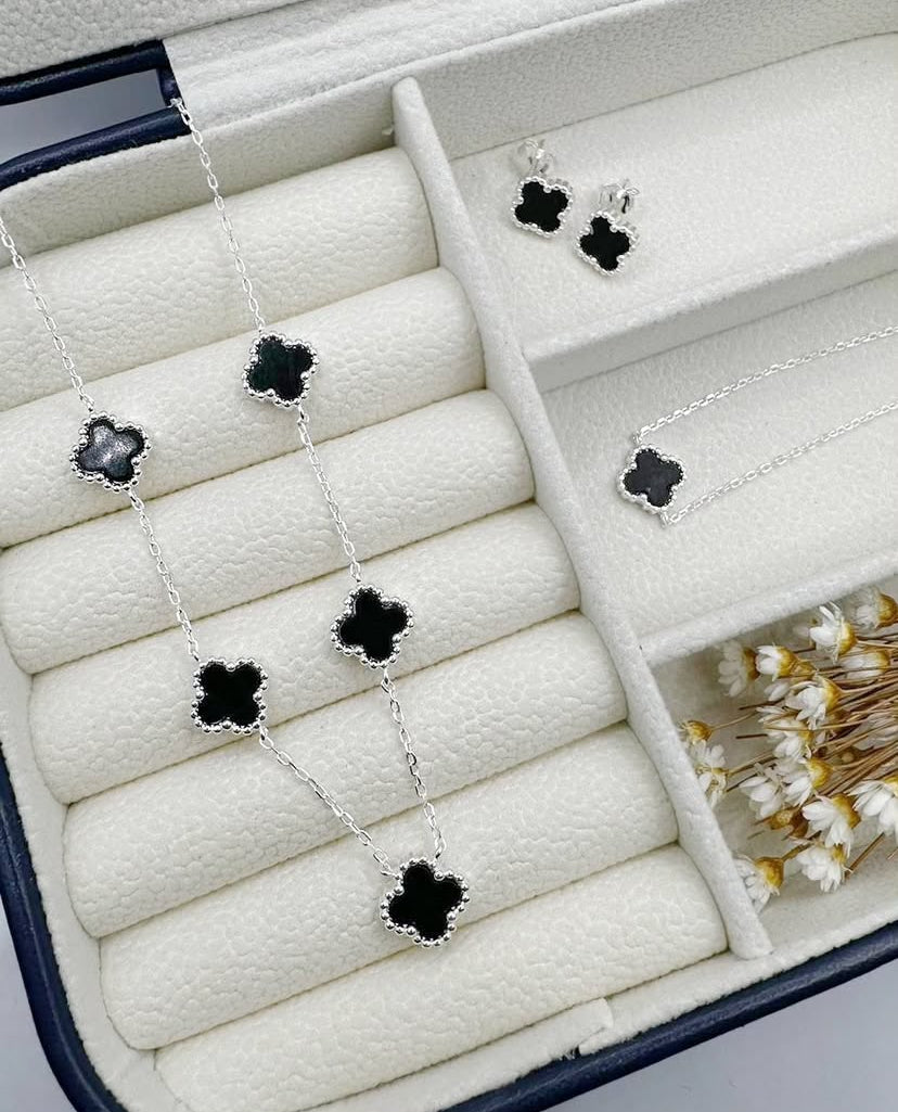 Com elos finamente trabalhados e um acabamento polido que realça o brilho da prata, o colar Van Cleef é ideal para uso individual ou em composições elegantes.