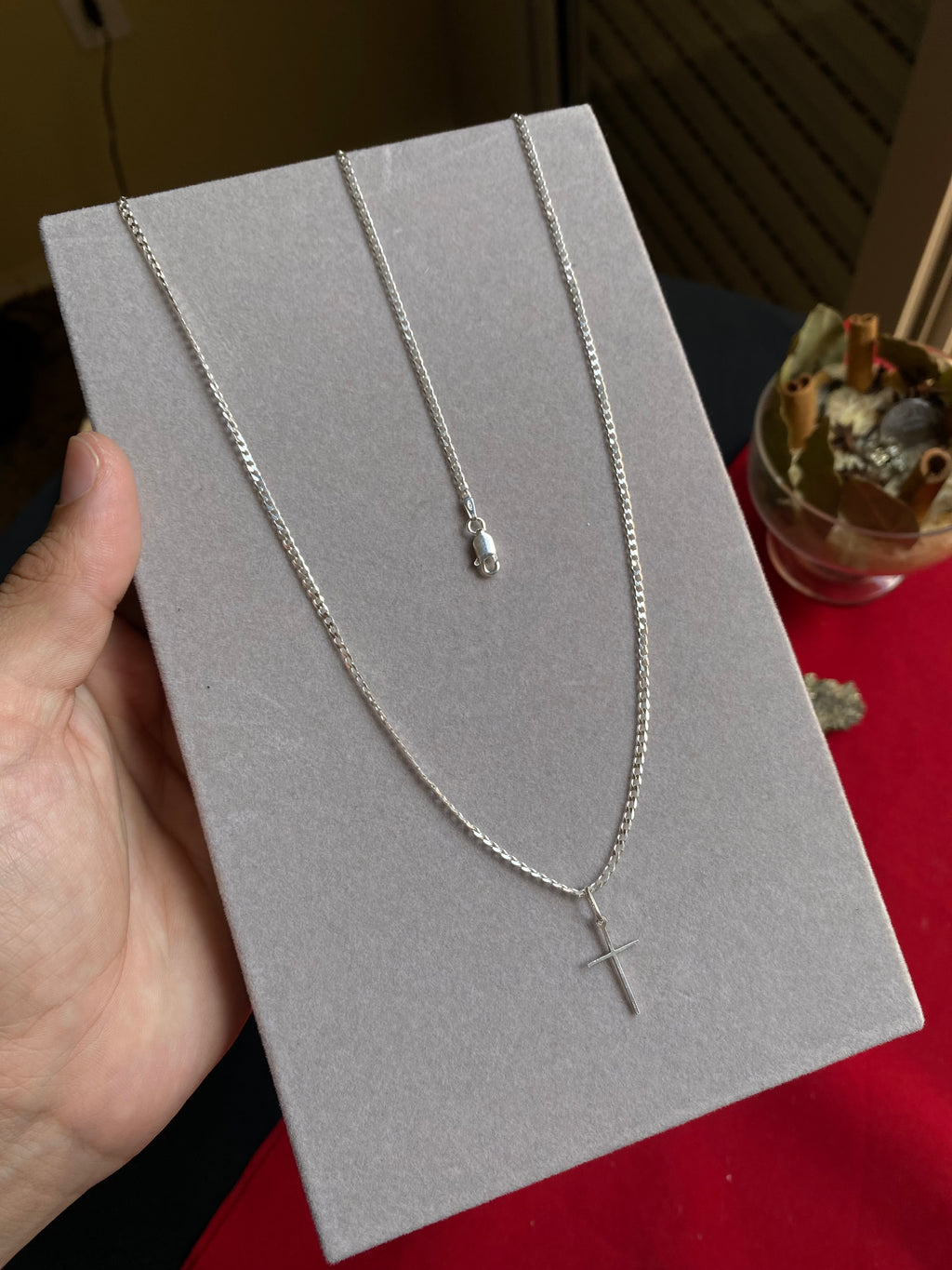 Garanta agora seu Conjunto Grumet com Pingente Cruz – Prata 925 e sinta o poder dos detalhes que representam quem você é.