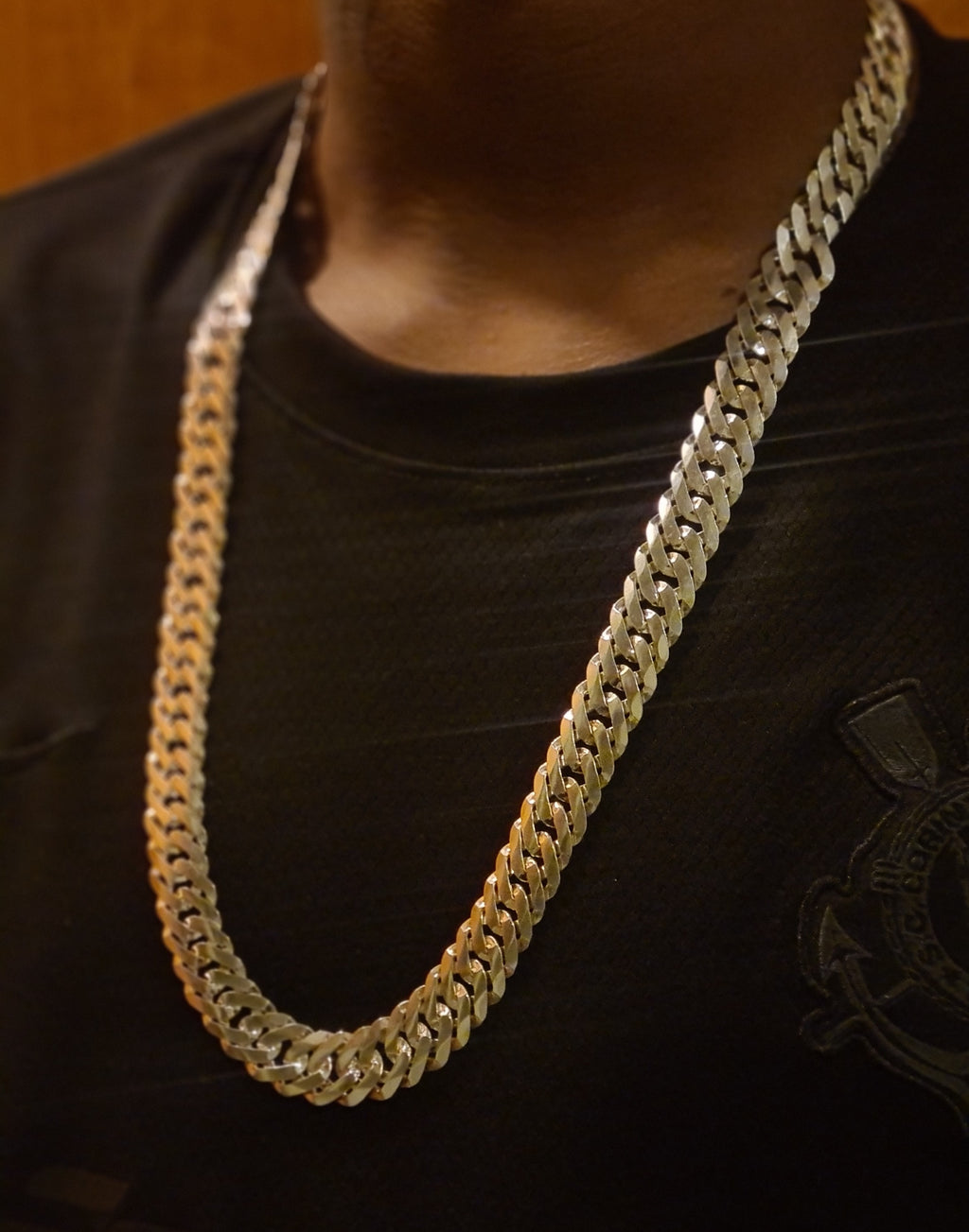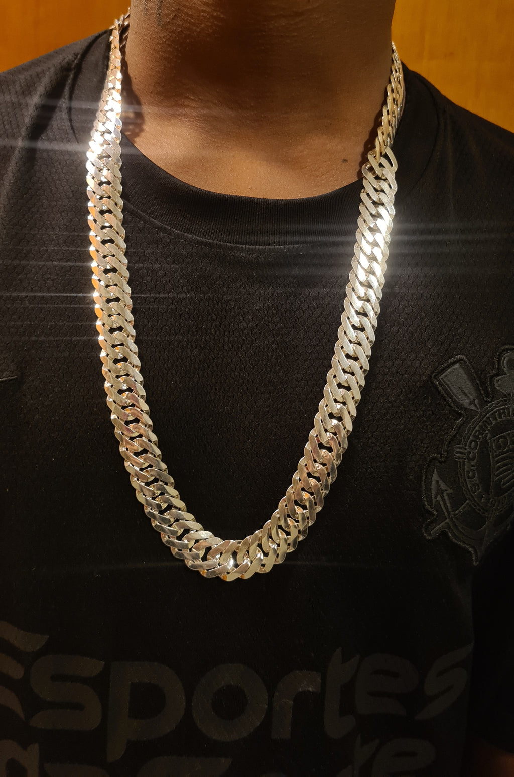 A Corrente Elo Duplo 17mm em Prata 925 é uma peça marcante, desenvolvida para quem busca presença, sofisticação e máxima proteção. Seu design robusto de elos duplos proporciona impacto visual e resistência superior, enquanto o fecho gaveta com duas travas anti-furto garante total segurança no uso.
